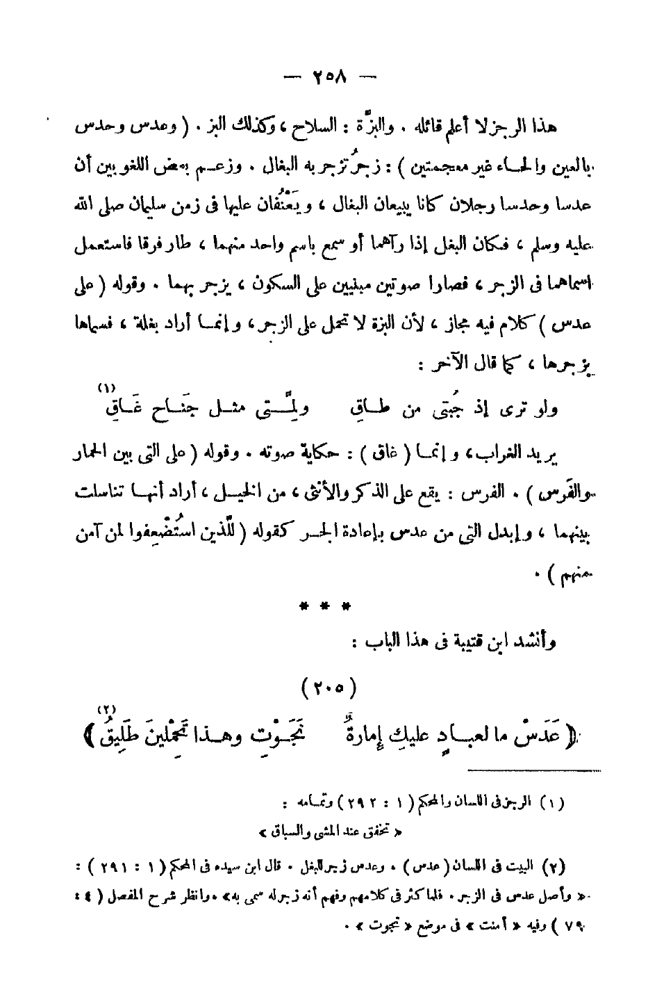 يريد الغراب، وإنما (غاق): حكاية صوته. وقوله (على التي بين الحمار والفرس). الفرس: يقع على الذكر والأنثى، من الخيل، أراد أنها تناسلت بينهما، وإبدال التي من عدس بإعادة الجر كقوله (للذين استضعفوا لمن آمن منهم).