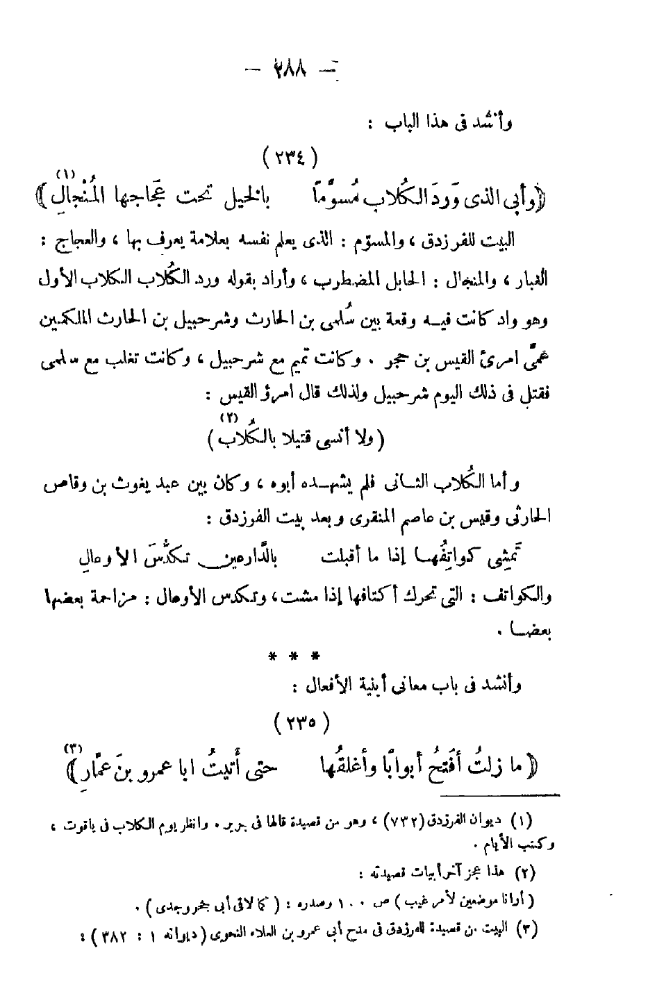 وأما الكلاب الثاني فلم يشهده أبوه، وكان بين عبد يغوث بن وقاص الحارثي وقيس بن عاصم المنقري وبعد بيت الفرزق: