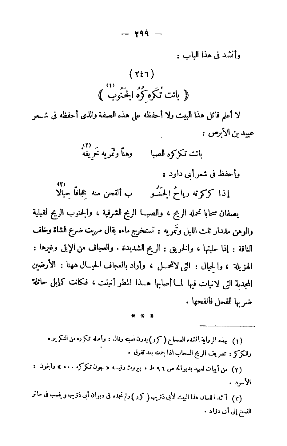 يصفان سحاباً تحمله الريح، والصبا الريح الشريقة، والجنوب الريح القبلية والوهن مقدار ثلث الليل وتمريه: تستخرج ماءه يقال مريت ضرع الشاة وخلف الناقة: إذا حلبتها، والخريق: الريح الشديدة. والعجاف من الإبل وغيرها: الهزيلة، والحيال: التي لا تحمل، وأراد بالعجاف الحيال ههنا: الأرضين المجدبة التي لا نبات فيها لما أصابها هذا المطر أنبتت، فكانت كإبل حائلة ضربها الفحل فألقحها.