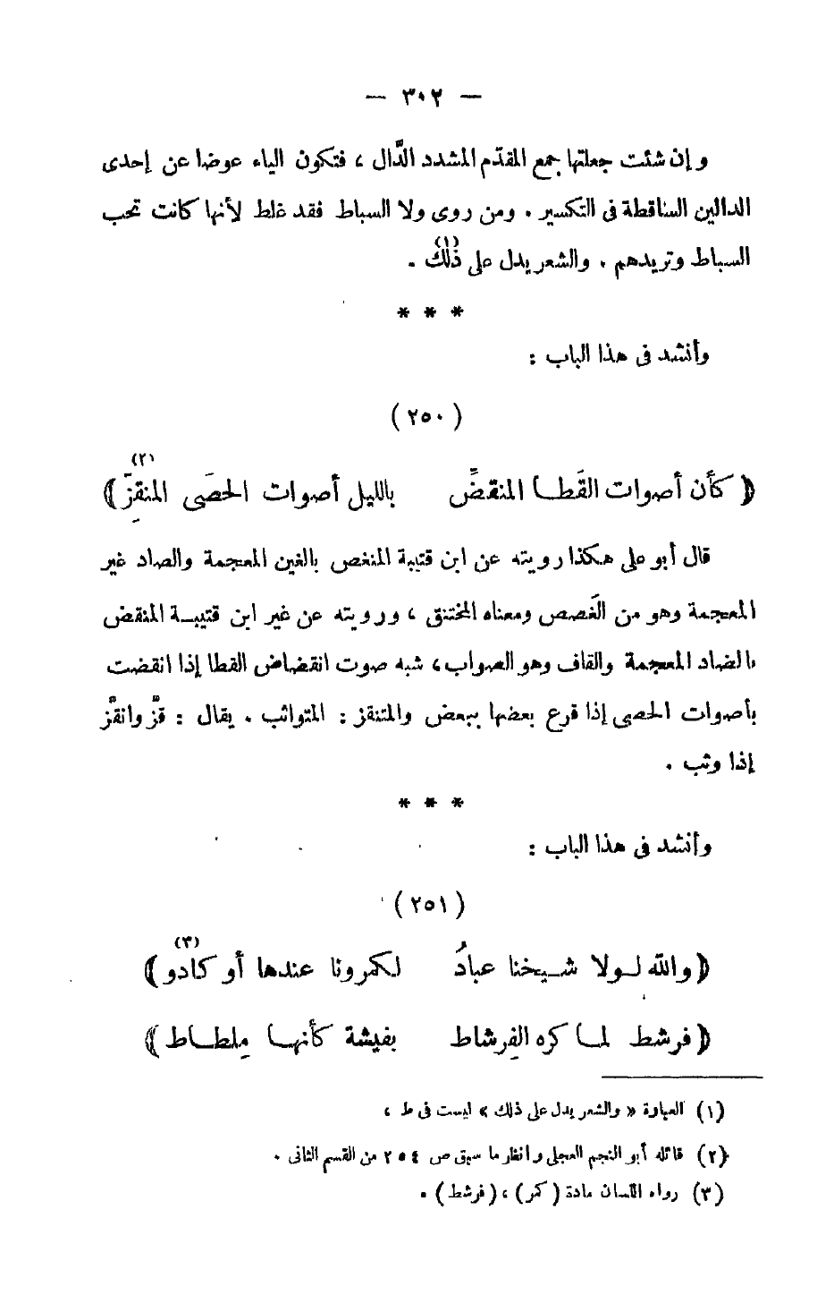 وإن شئت جعلتها جمع المقدم المشدد الدال، فتكون الياء عوضاً عن إحدى الدالين الساقطة في التكسير. ومن روى ولا السباط فقد غلط لأنها كانت تحب السباط وتريدهم، والشعر يدل عل ذلك.