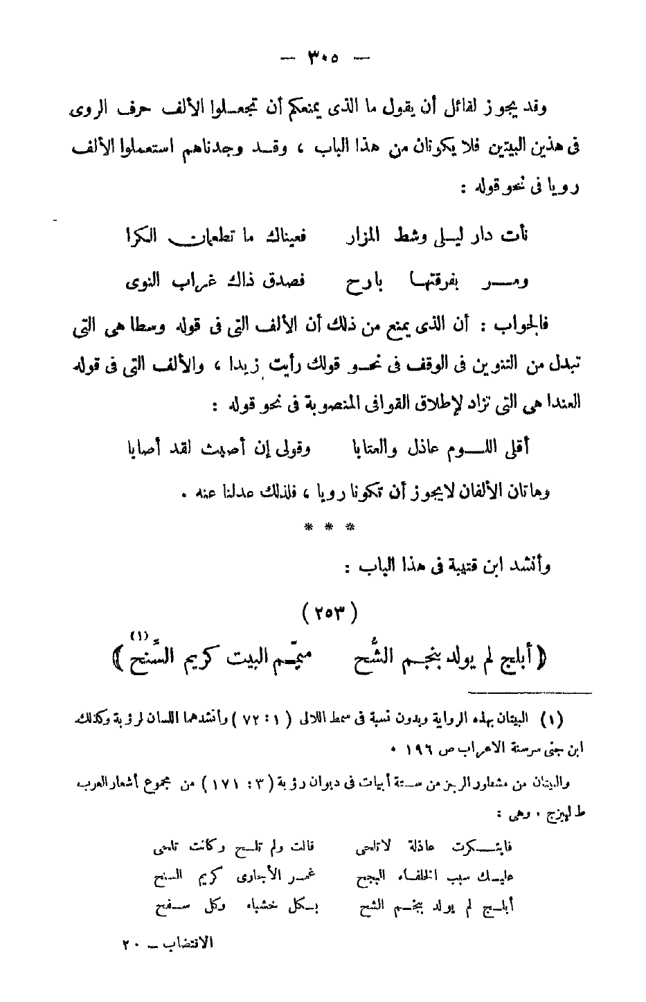 وقد يجوز لقائل أن يقول ما الذي يمنعكم أن جعلوا الألف حرف الروى فيهذين البيتين فلا يكونان من هذا الباب، وقد وجدناهم استعملوا الألف رويا في نحو قوله: