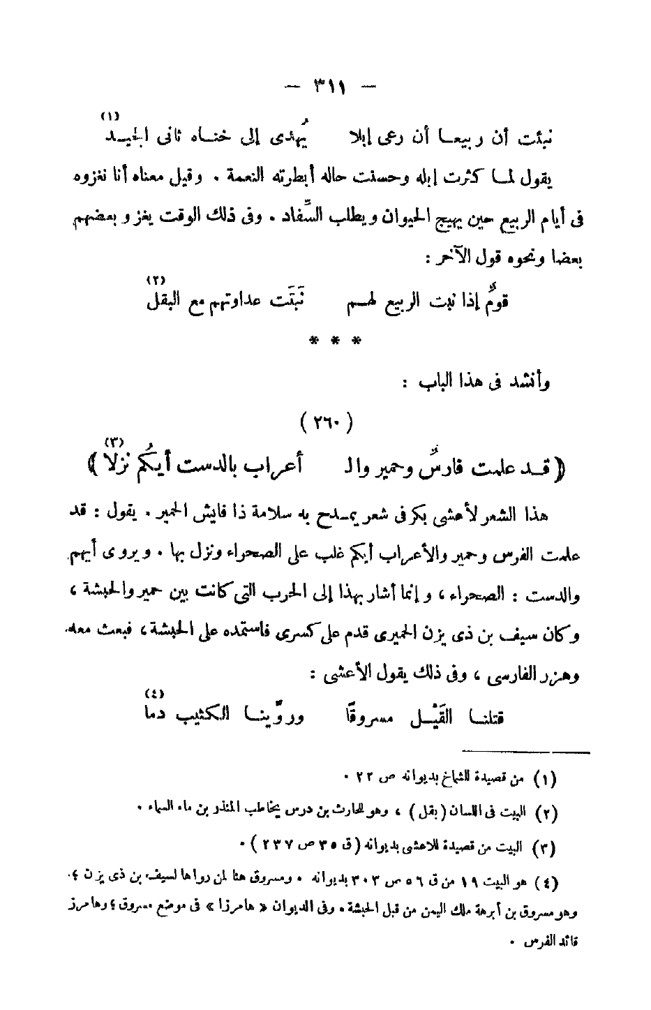 هذا الشعر لأعشى بكر في شعر يمدح به سلامة ذا فايش الحمير. يقول: قد علمت الفرس وحمير والأعراب أيكم غلب على الصحراء ونزل بها. ويروى أيهم والدست: الصحراء، وإنما أشار بهذا على الحرب التي كانت بين حمير والحبشة، وكان سيف بن ذي يزن الحميري قدم على كسرى فاستمده على الحبشة، فبعث معه وهزر الفارسي، وفي ذلك يقول الأعشى: