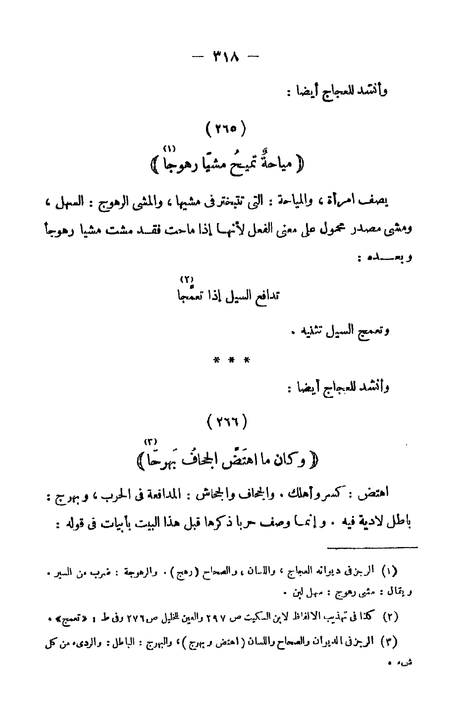 يصف امرأة، والمياحة: التي تتبختر في مشيها، والمشي الرهوج: السهل، ومشي مصدر محمول على معنى الفعل لأنها إذا ماحت فقد مشت مشياً رهوجاً وبعده: