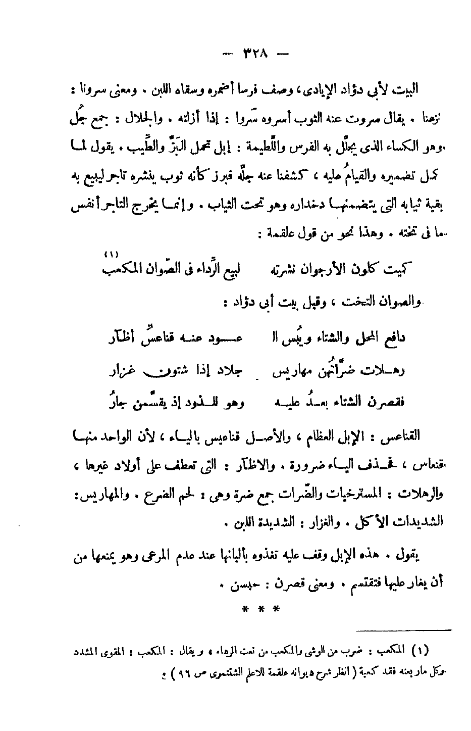 القناعس: الإبل العظام، والأصل قناعيس بالياء، لأن الواحد منها قنعاس، فحذف الياء ضرورة. والاظآر: التي تعطف على أولاد غيرها، والرهلات: المسترخيات والضرات جمع ضرة وهي: لحم الضرع. والمهاريس: الشديدات الأكل. والغزار: الشديدة اللبن.