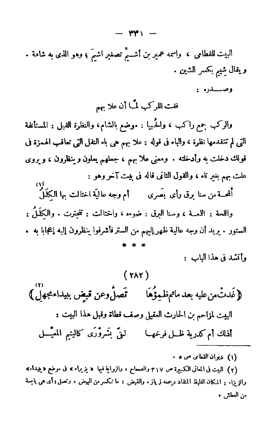 البيت للقطامي، واسمه عمير بن أشيم تصغير اشيم؛ وهو الذي به شامة. ويقال شييم بكسر الشين.