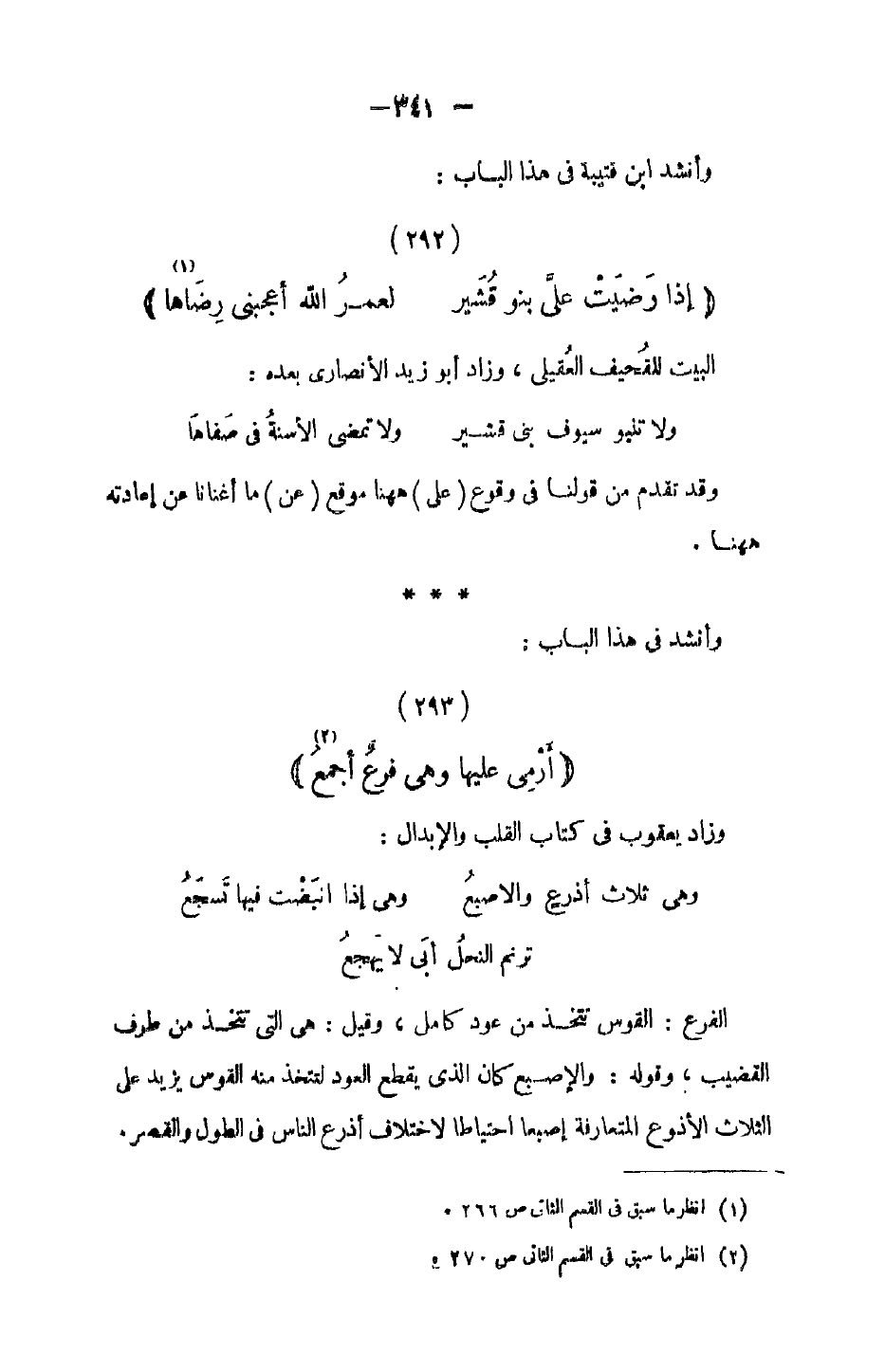 وهي ثلاث أذرع والإصبع ... وهي إذا انبضت فيها تسجع