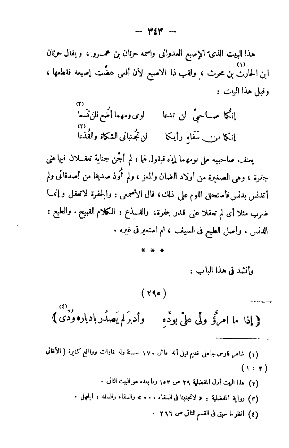 هذا البيت الذي الإصبع العدواني واسمه حرثان بن عمرو، ويقال حرثان ابن الحارث بن محرث، ولقب ذا الإصبع لأن أفعى عضت إصبعه فقطعها، وقبل هذا البيت: