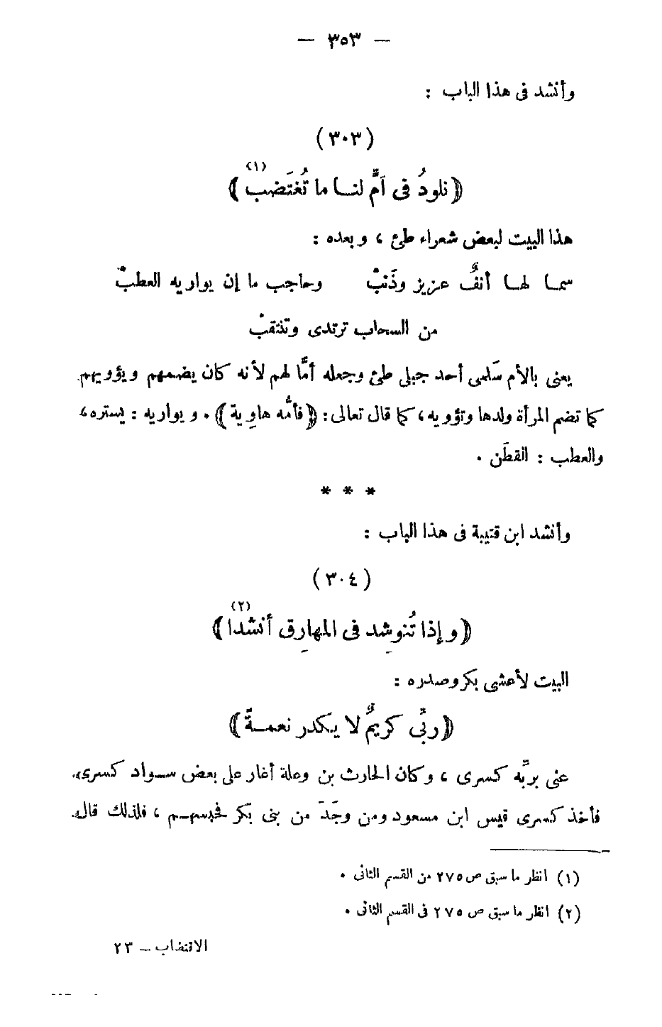 يعني بالأم سلمى أحد جبلى طيء وجعله أما لهم لأنه كان يضمهم ويؤويهم كما تضم المرأة ولدها وتؤويه، كما قال تعالى: (فأمه هاوية). ويواريه: يستره، والعطب: القطن.
