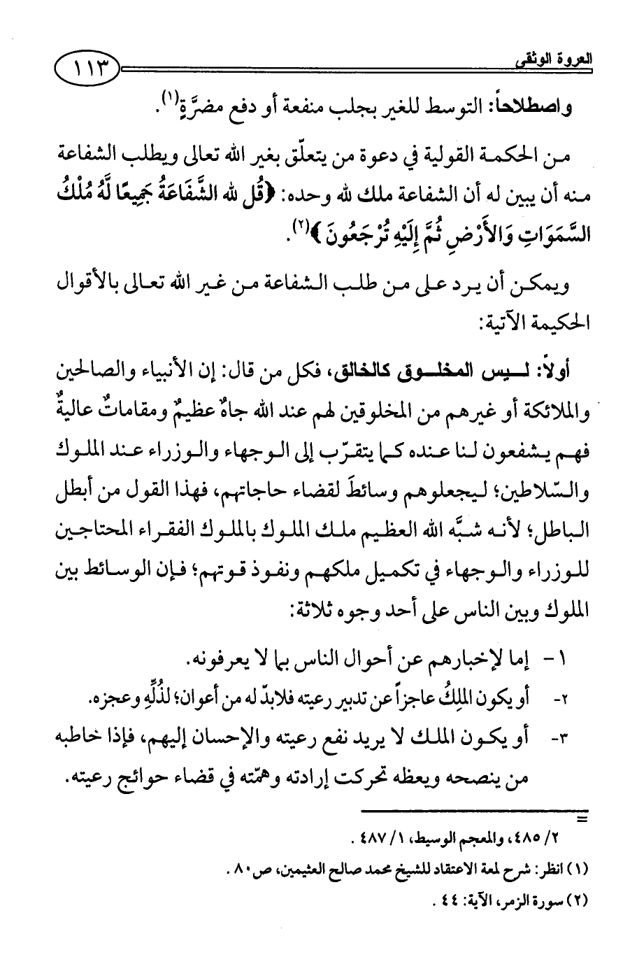 من الحكمة القولية في دعوة من يتعلّق بغير الله تعالى ويطلب الشفاعة منه أن يبين له أن الشفاعة ملك لله وحده: {قُل لله الشَّفَاعَةُ جَمِيعًا لَّهُ مُلْكُ السَّمَوَاتِ وَالأَرْضِ ثُمَّ إِلَيْهِ تُرْجَعُونَ} (¬2).