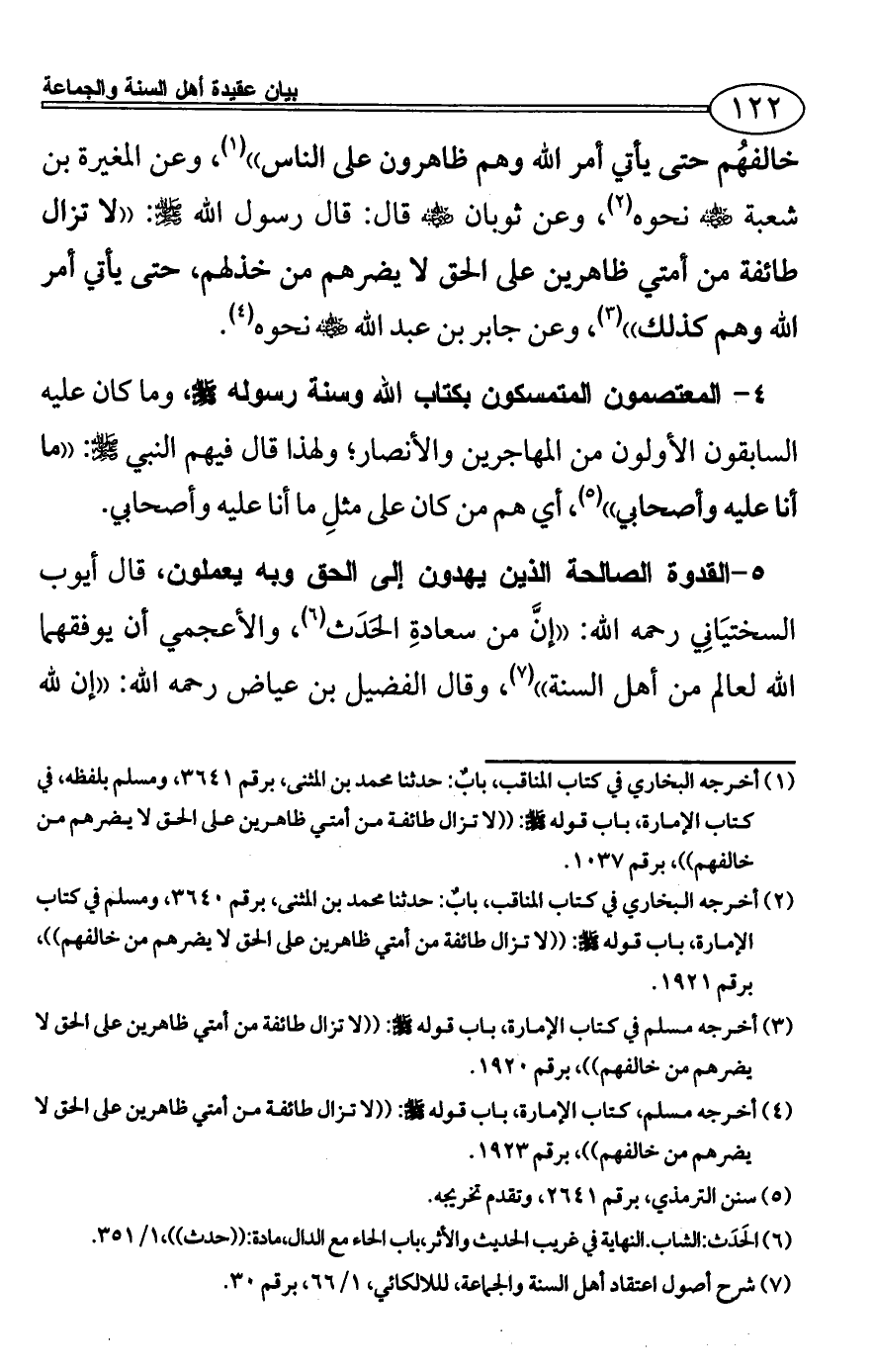 (¬7) شرح أصول اعتقاد أهل السنة والجماعة، لللالكائي، 1/ 66، برقم 30.
