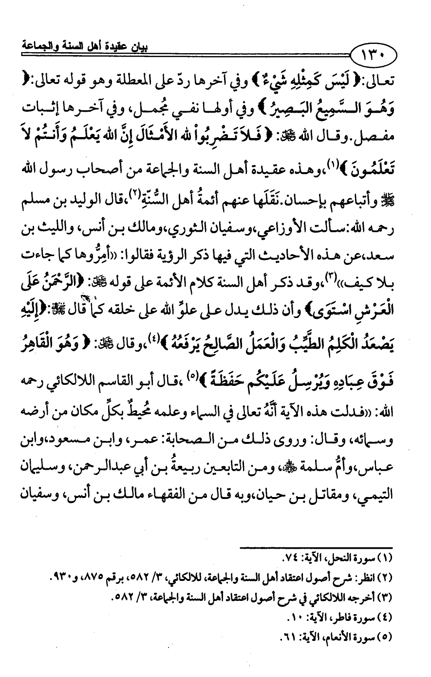 (¬2) انظر: شرح أصول اعتقاد أهل السنة والجماعة، للالكائي، 3/ 582، برقم 875، و930.