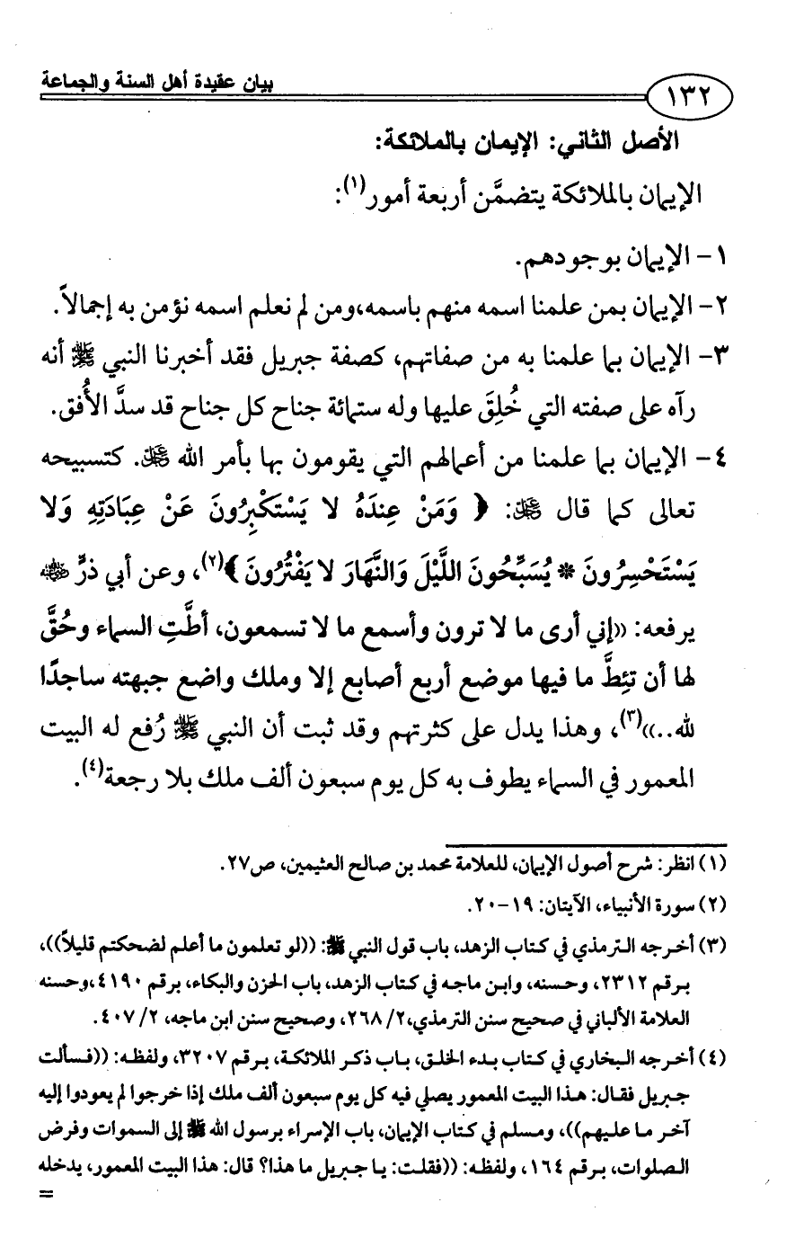 الإيمان بالملائكة يتضمَّن أربعة أمور (¬1):