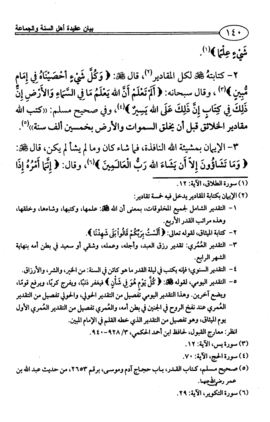 (¬2) الإيمان بكتابة المقادير يدخل فيه خمسة تقادير: