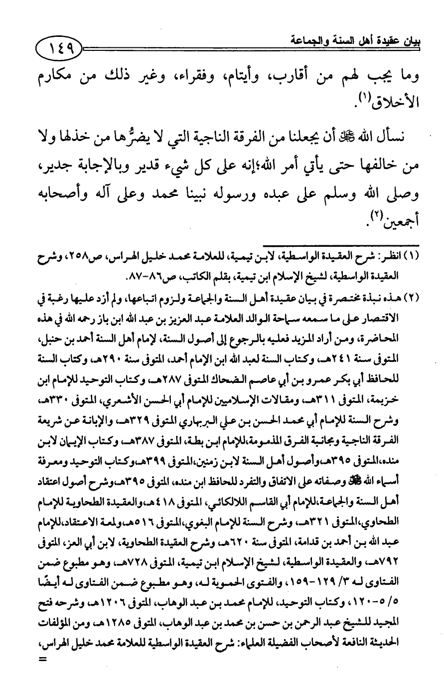 (¬1) انظر: شرح العقيدة الواسطية، لابن تيمية، للعلامة محمد خليل الهراس، ص258، وشرح العقيدة الواسطية، لشيخ الإسلام ابن تيمية، بقلم الكاتب، ص86 - 87.