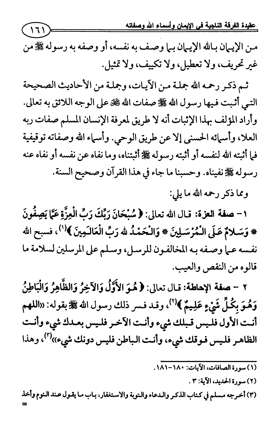 (¬3) أخرجه مسلم في كتاب الذكر والدعاء والتوبة والاستغفار، باب ما يقول عند النوم وأخذ المضجع، برقم 2713، وانظر: شرح العقيدة الواسطية للهراس، ص42.