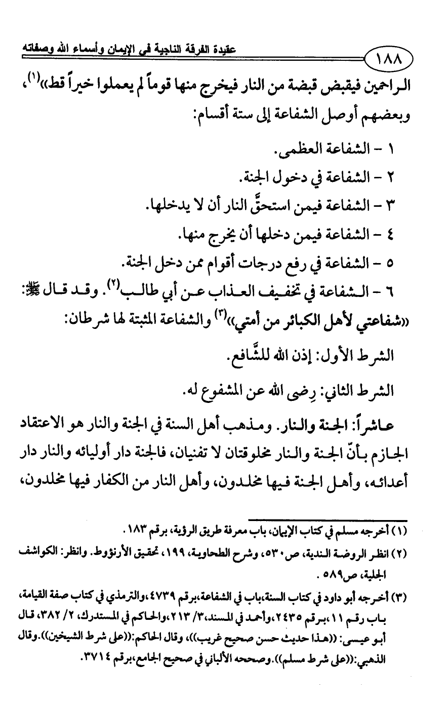 (¬1) انظر الروضة الندية، ص530، وشرح الطحاوية، 199، تحقيق الأرنؤوط. وانظر: الكواشف الجلية، ص589.