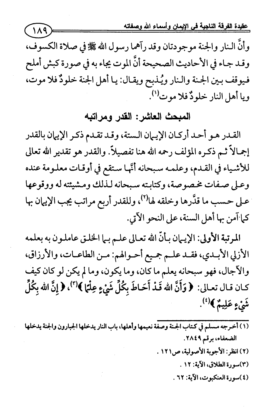 المبحث العاشر: القدر ومراتبه