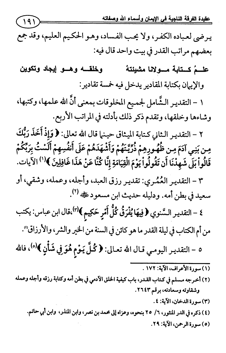 والإيمان بكتابة المقادير يدخل فيه خمسة تقادير: