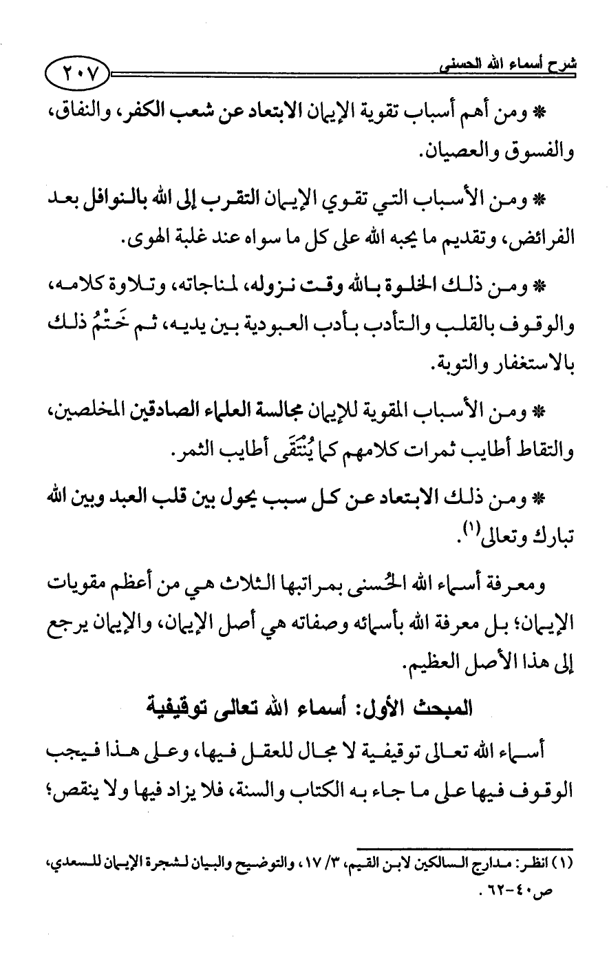 (¬1) انظر: مدارج السالكين لابن القيم، 3/ 17، والتوضيح والبيان لشجرة الإيمان للسعدي،