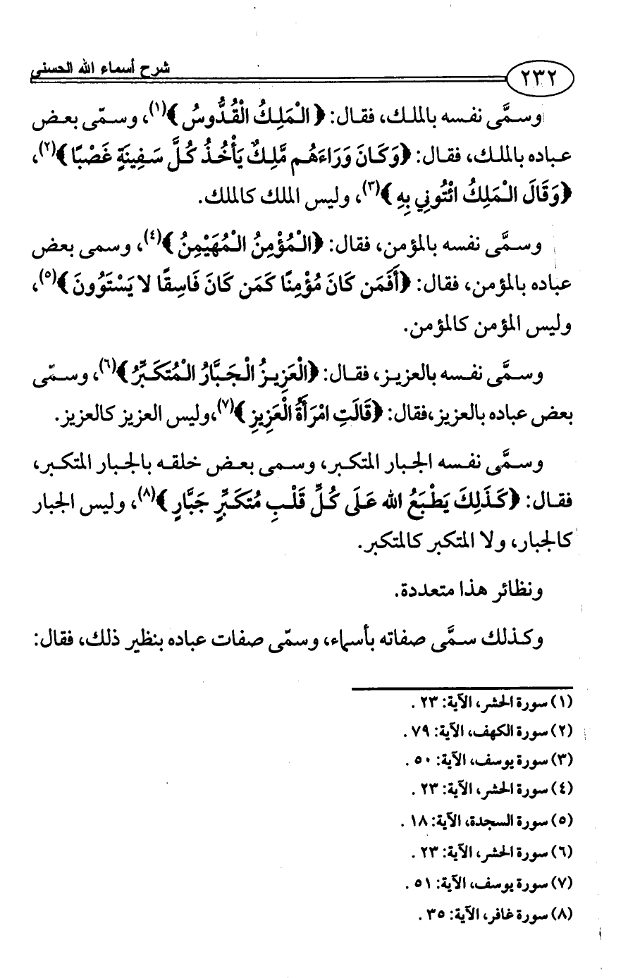 (¬6) سورة الحشر، الآية: 23.