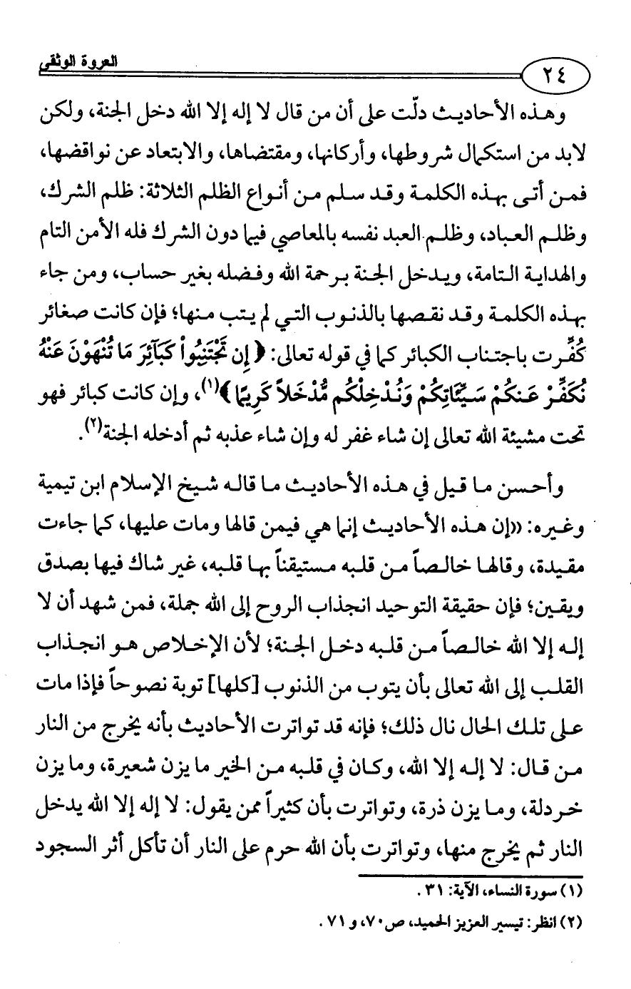 (¬2) انظر: تيسير العزيز الحميد، ص70، و 71.