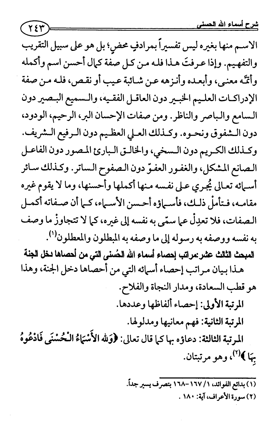 هذا بيان مراتب إحصاء أسمائه التي من أحصاها دخل الجنة، وهذا هو قطب السعادة، ومدار النجاة والفلاح.