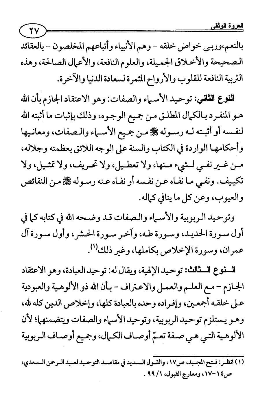 (¬1) انظر: فتح المجيد، ص17، والقول السديد في مقاصد التوحيد لعبد الرحمن السعدي،