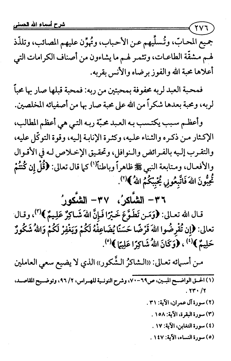 36 - الشَّاكرُ، 37 - الشَّكورُ