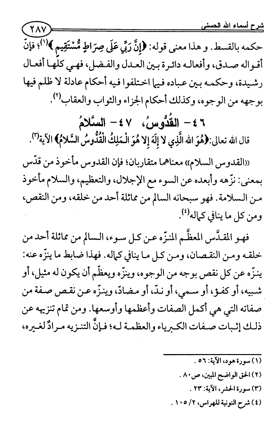 قال الله تعالى: {هُوَ الله الَّذِي لا إِلَهَ إِلا هُوَ الْمَلِكُ الْقُدُّوسُ السَّلامُ} الآية (¬3).