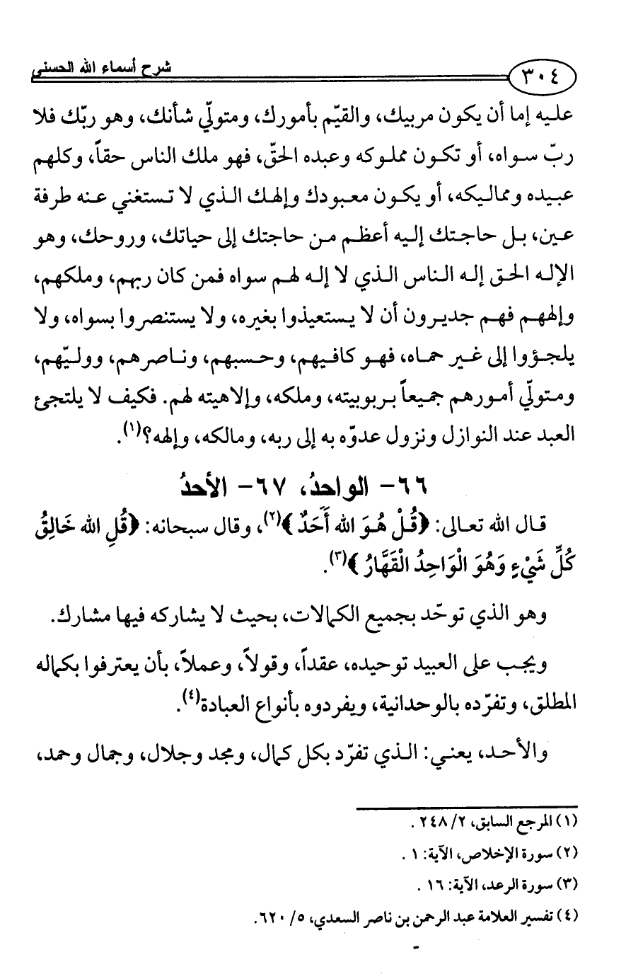 66 - الواحِدُ، 67 - الأحدُ