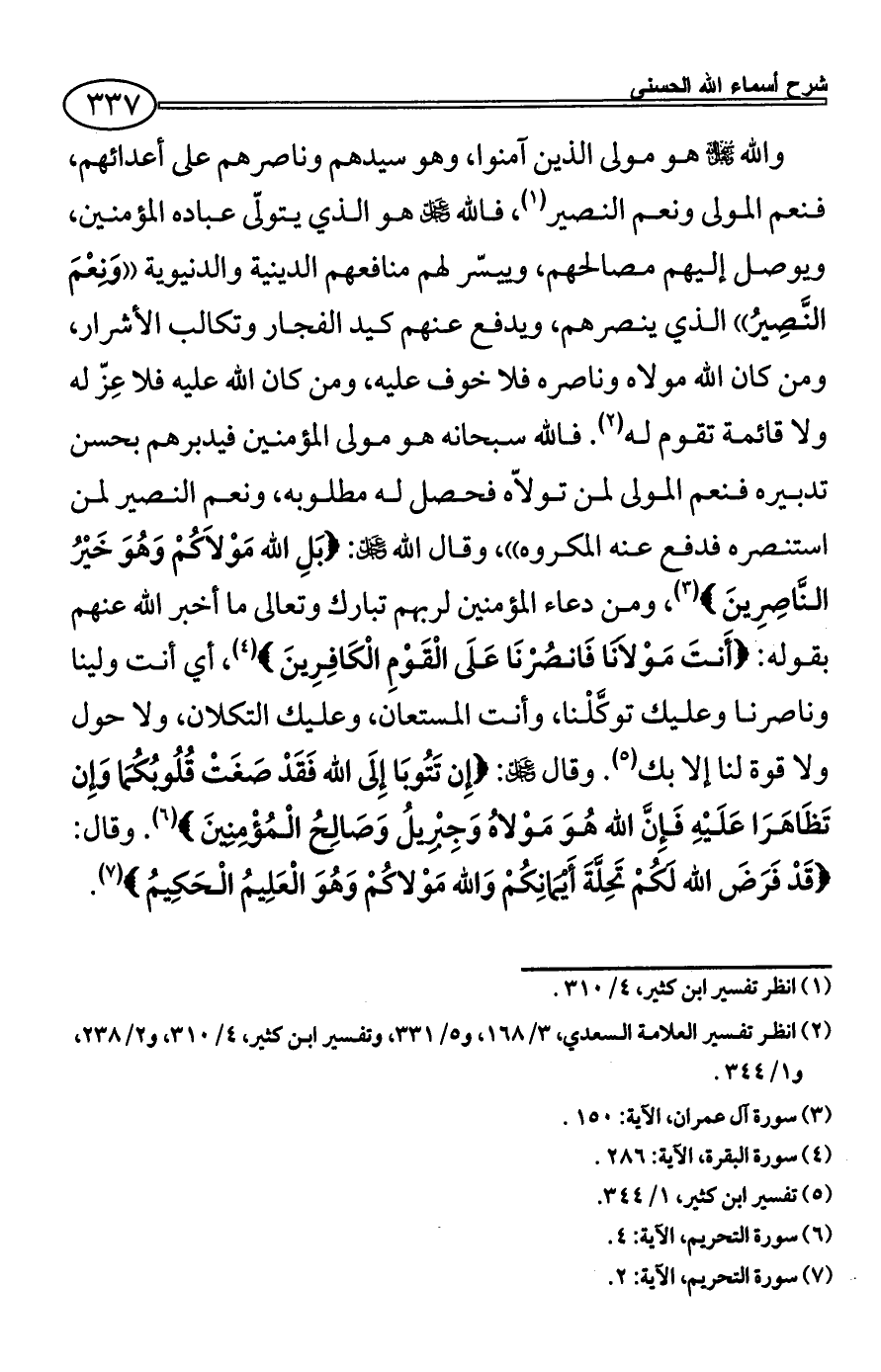 (¬2) انظر تفسير العلامة السعدي، 3/ 168، و5/ 331، وتفسير ابن كثير، 4/ 310، و2/ 238،