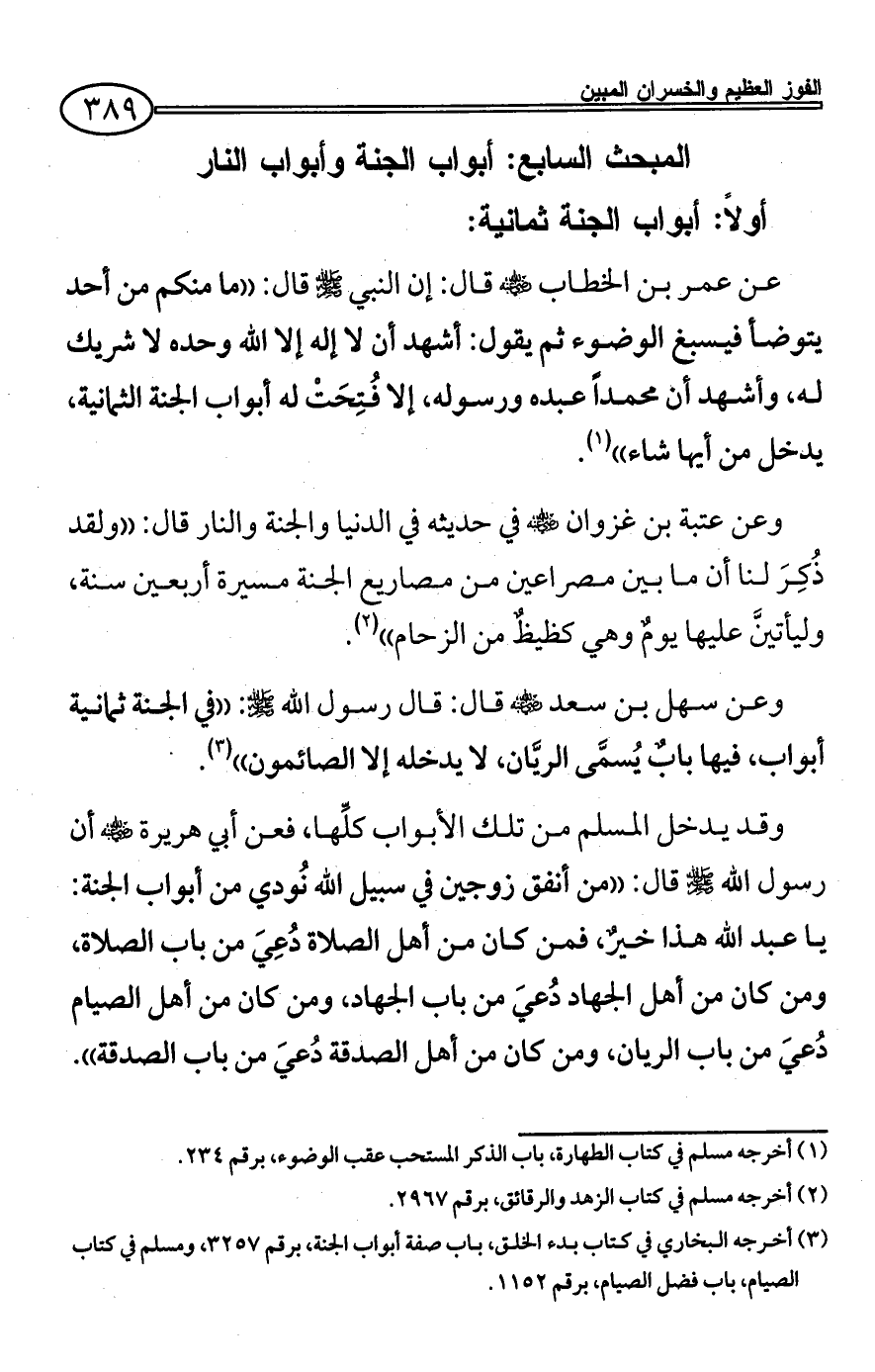 (¬3) أخرجه البخاري في كتاب بدء الخلق، باب صفة أبواب الجنة، برقم 3257، ومسلم في كتاب الصيام، باب فضل الصيام، برقم 1152.