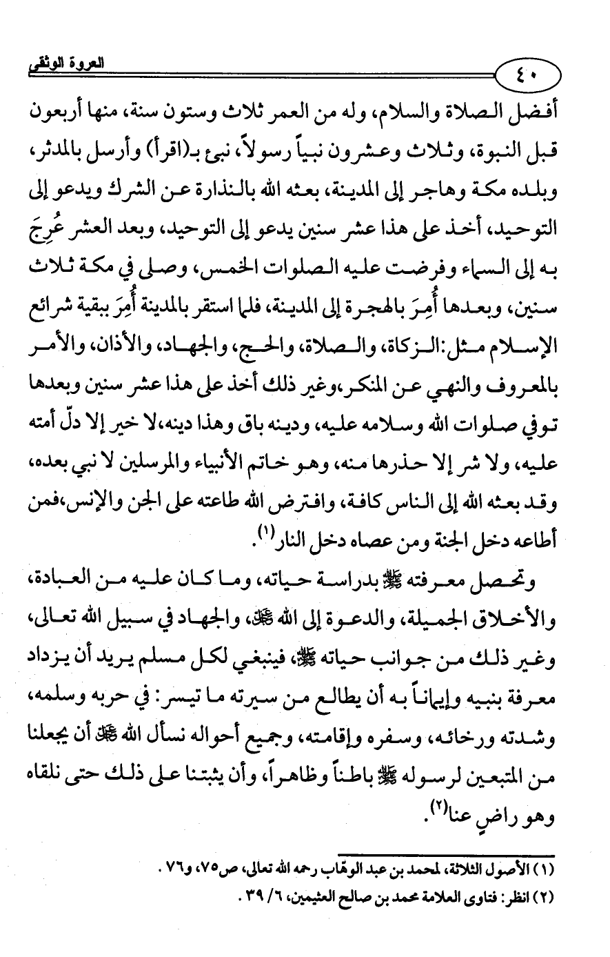 (¬1) الأصول الثلاثة، لمحمد بن عبد الوهّاب رحمه الله تعالى، ص75، و76.