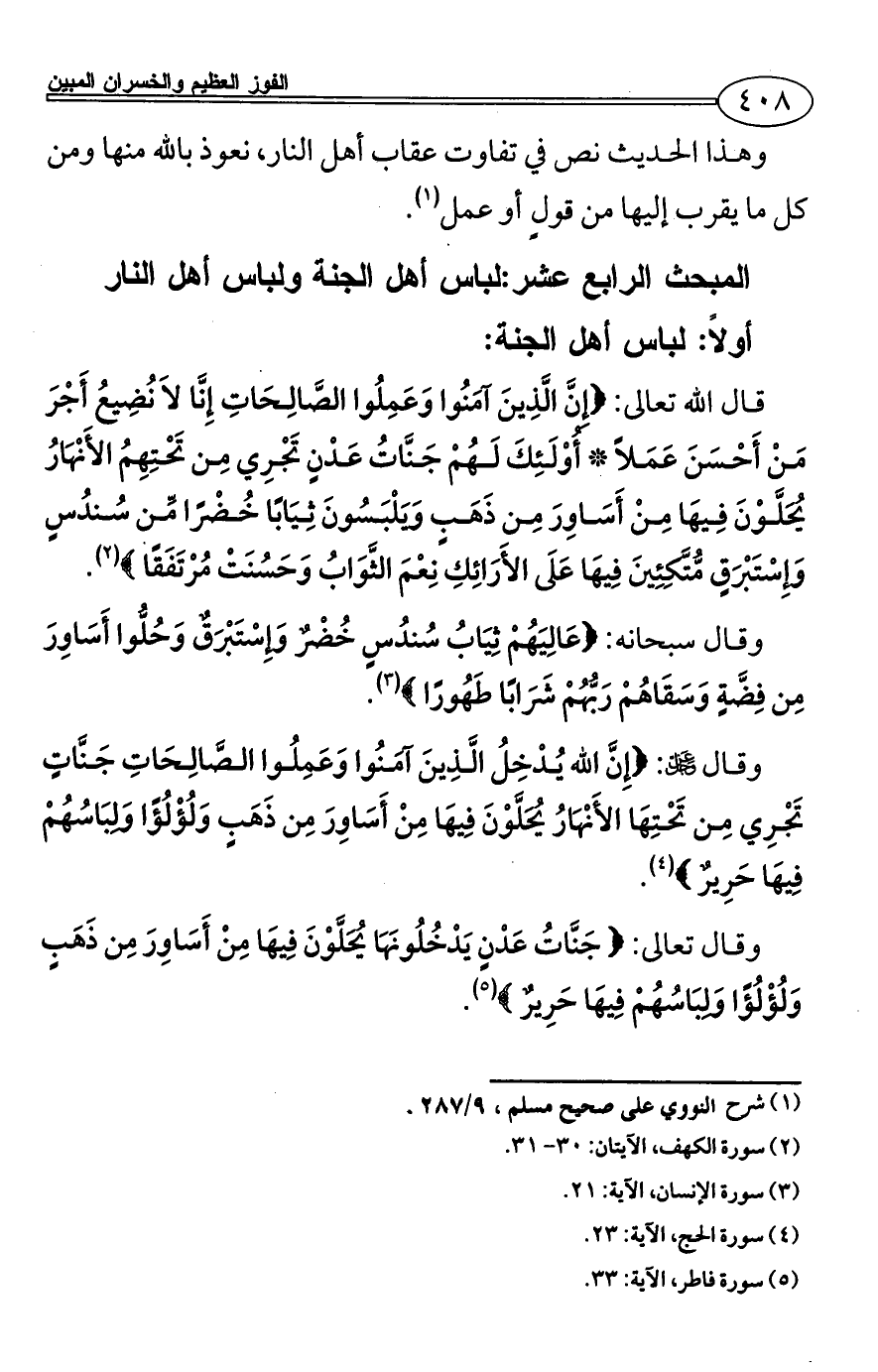 المبحث الرابع عشر: لباس أهل الجنة ولباس أهل النار