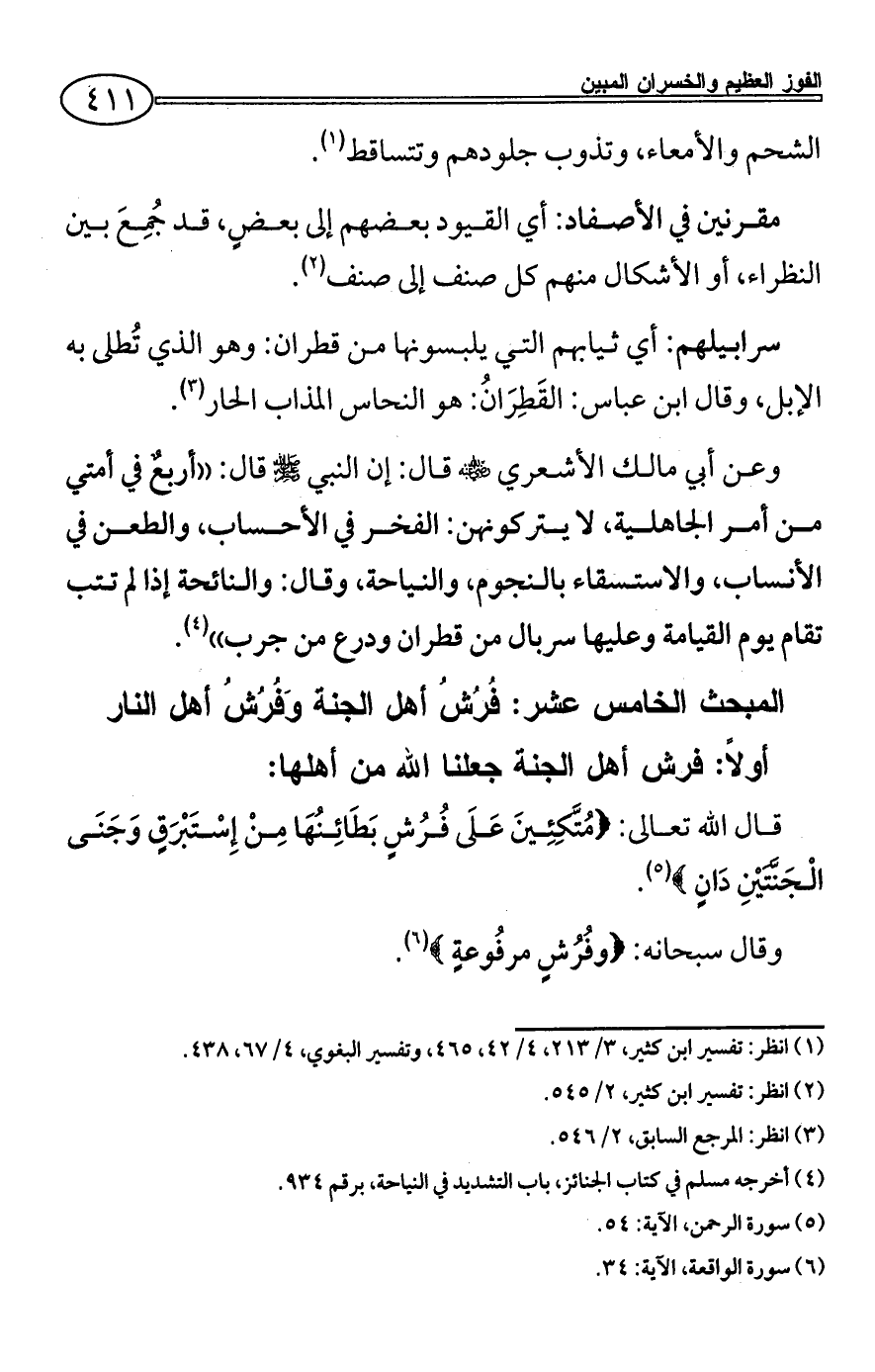 المبحث الخامس عشر: فُرُشُ أهل الجنة وَفُرُشُ أهل النار