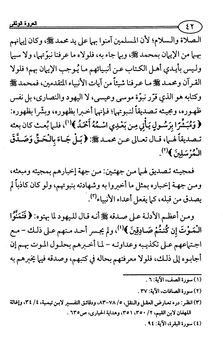 {وَمُبَشِّرًا بِرَسُولٍ يَأْتِي مِن بَعْدِي اسْمُهُ أَحْمَدُ} (¬1)، فلما بُعث كان بعثه تصديقاً لهما، قال تعالى عن محمد - صلى الله عليه وسلم -: {بَلْ جَاءَ بِالْحَقِّ وَصَدَّقَ الْمُرْسَلِينَ} (¬2).
