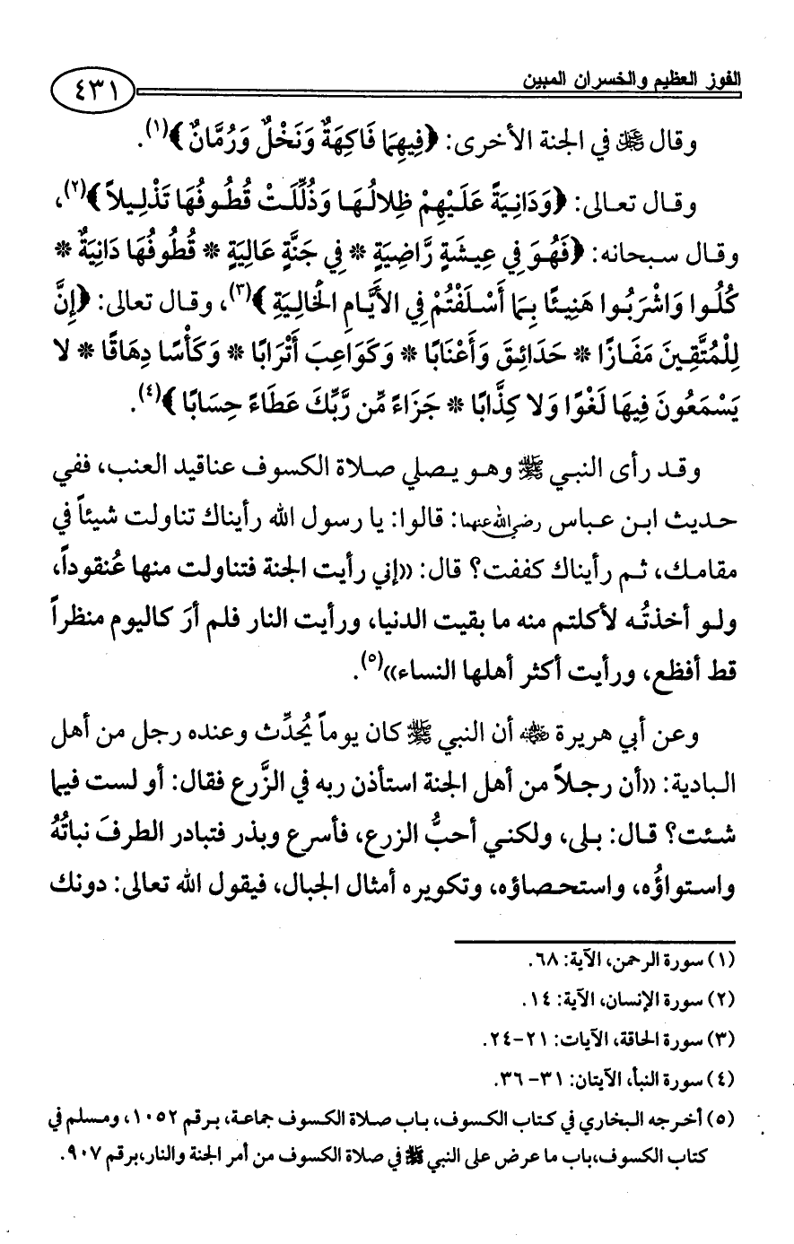 (¬6) أخرجه البخاري في كتاب الكسوف، باب صلاة الكسوف جماعة، برقم 1052، ومسلم في كتاب الكسوف، باب ما عرض على النبي - صلى الله عليه وسلم - في صلاة الكسوف من أمر الجنة والنار، برقم 907.