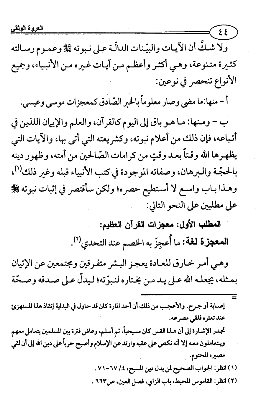 المعجزة لغة: ما أُعجِزَ به الخصم عند التحدي (¬2).