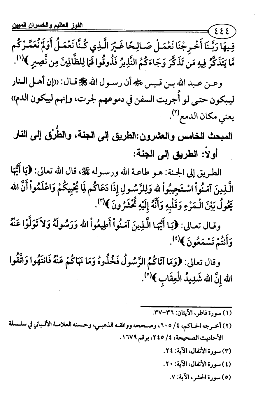 المبحث الخامس والعشرون: الطريق إلى الجنة، والطُّرُق إلى النار