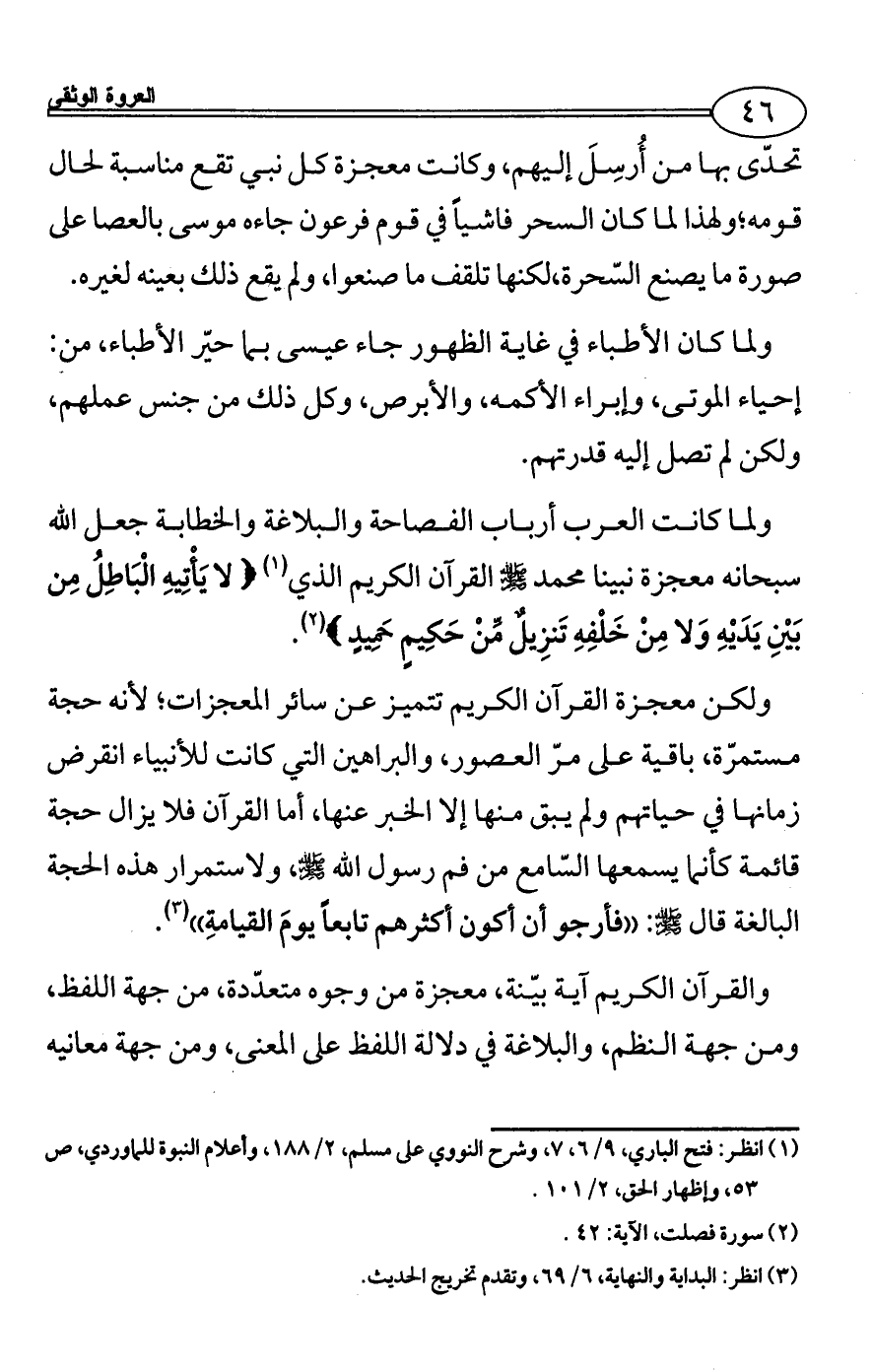 ولما كانت العرب أرباب الفصاحة والبلاغة والخطابة جعل الله سبحانه معجزة نبينا محمد - صلى الله عليه وسلم - القرآن الكريم الذي (¬1) {لا يَأْتِيهِ الْبَاطِلُ مِن بَيْنِ يَدَيْهِ وَلا مِنْ خَلْفِهِ تَنزِيلٌ مِّنْ حَكِيمٍ حَمِيدٍ} (¬2).