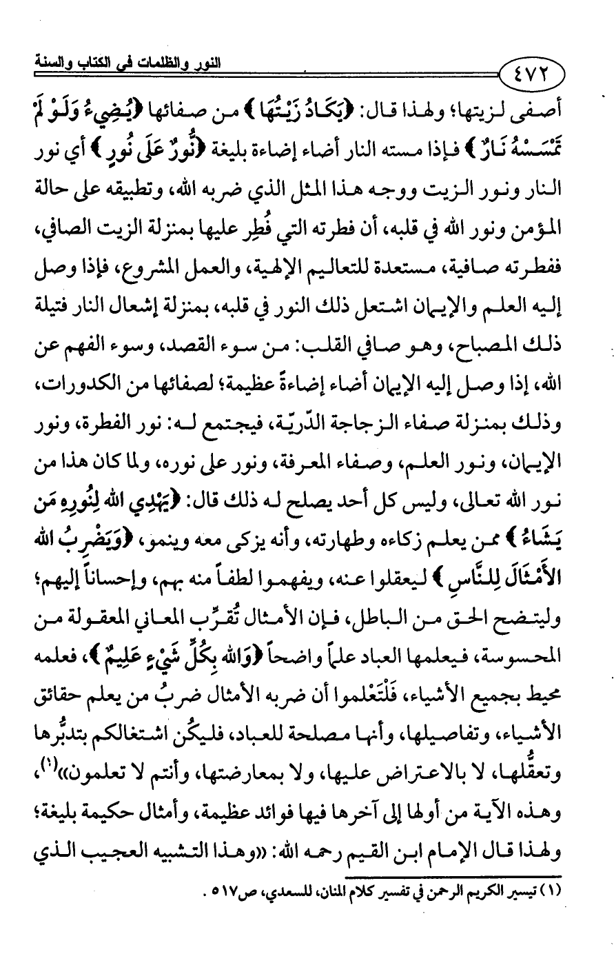 (¬1) تيسير الكريم الرحمن في تفسير كلام المنان، للسعدي، ص517.