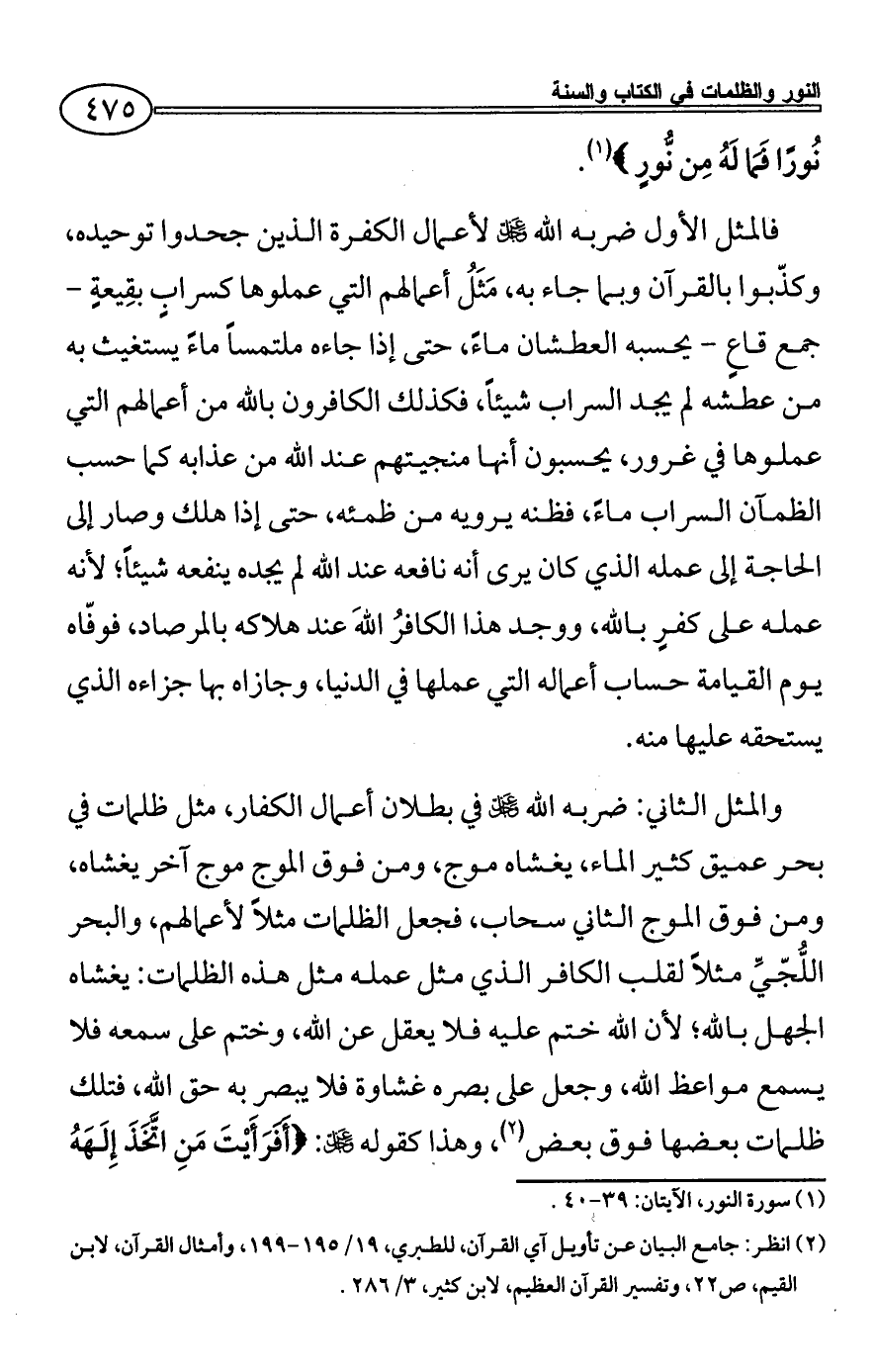 (¬1) سورة النور، الآيتان: 39 - 40.