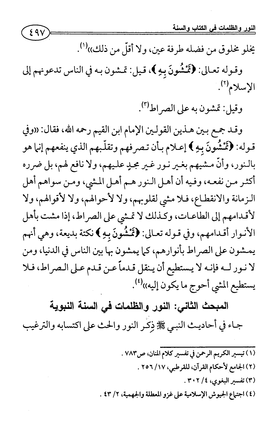 المبحث الثاني: النور والظلمات في السنة النبوية