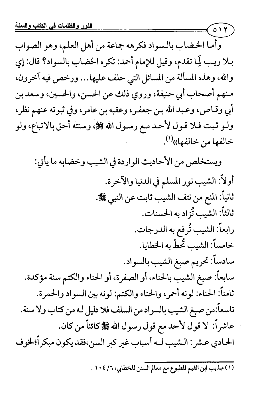 تاسعاً: من صبغ الشيب بالسواد من السلف فلا دليل له من كتاب ولا سنة.