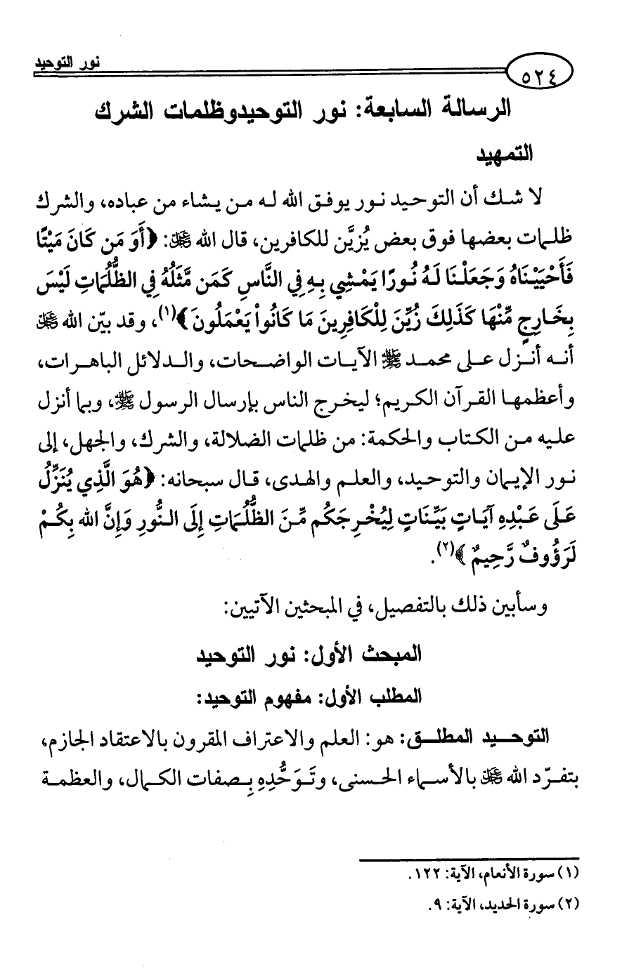 الرسالة السابعة: نور التوحيد وظلمات الشرك