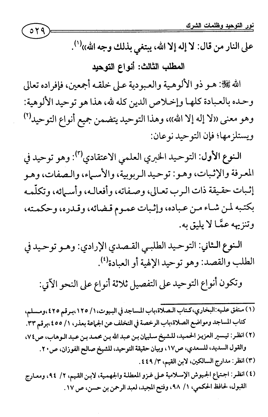 (¬2) انظر: تيسير العزيز الحميد، للشيخ سليمان بن عبد الله بن محمد بن عبد الوهاب، ص74، والقول السديد، للسعدي، ص17، وبيان حقيقة التوحيد، للشيخ صالح الفوزان، ص20.
