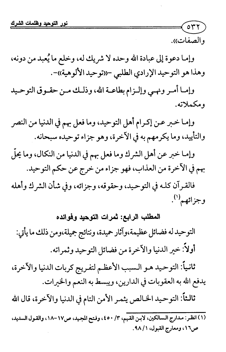 (¬1) انظر: مدارج السالكين، لابن القيم، 3/ 450، وفتح المجيد، ص17 - 18، والقول السديد،