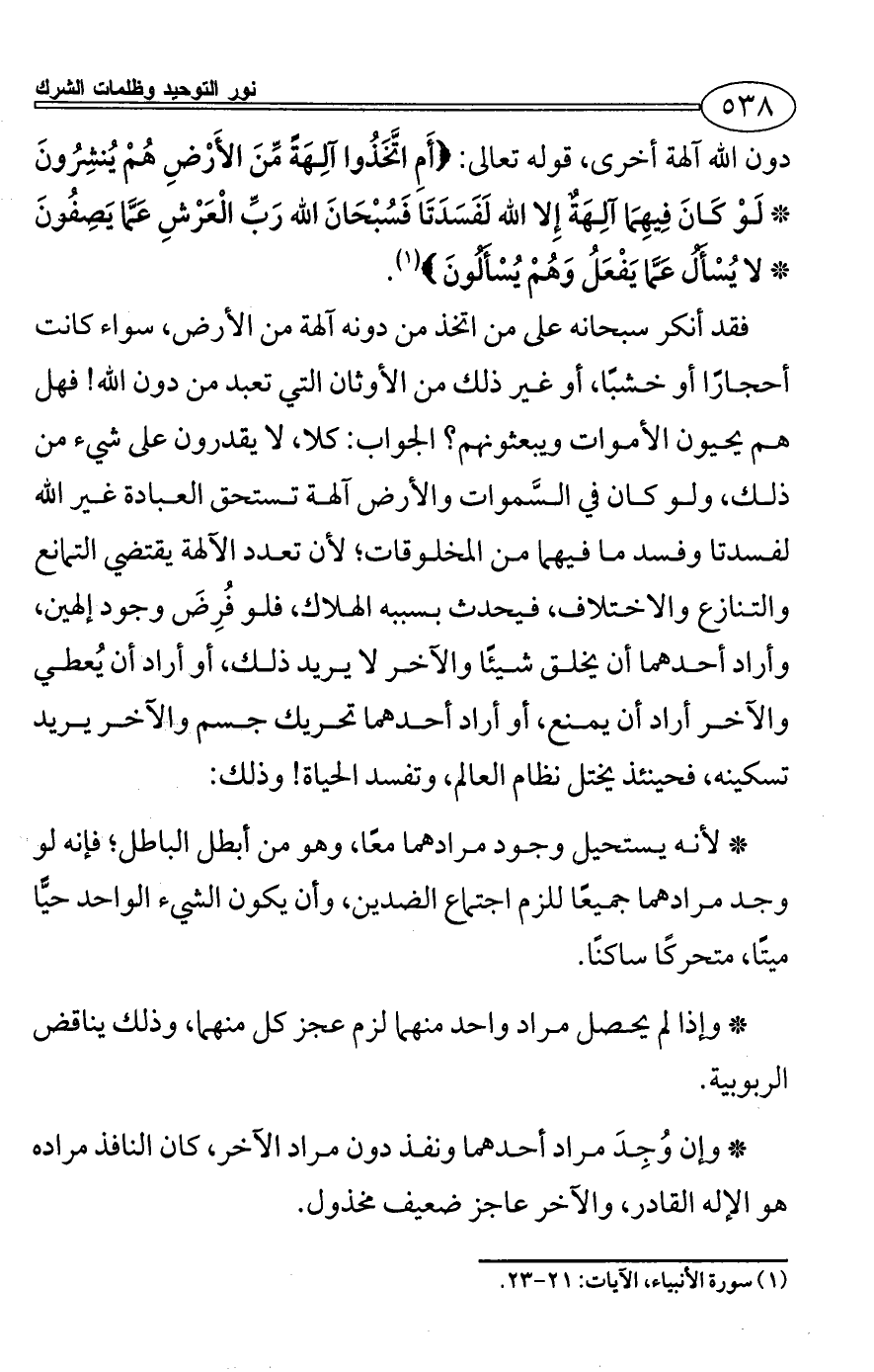 (¬1) سورة الأنبياء، الآيات: 21 - 23.