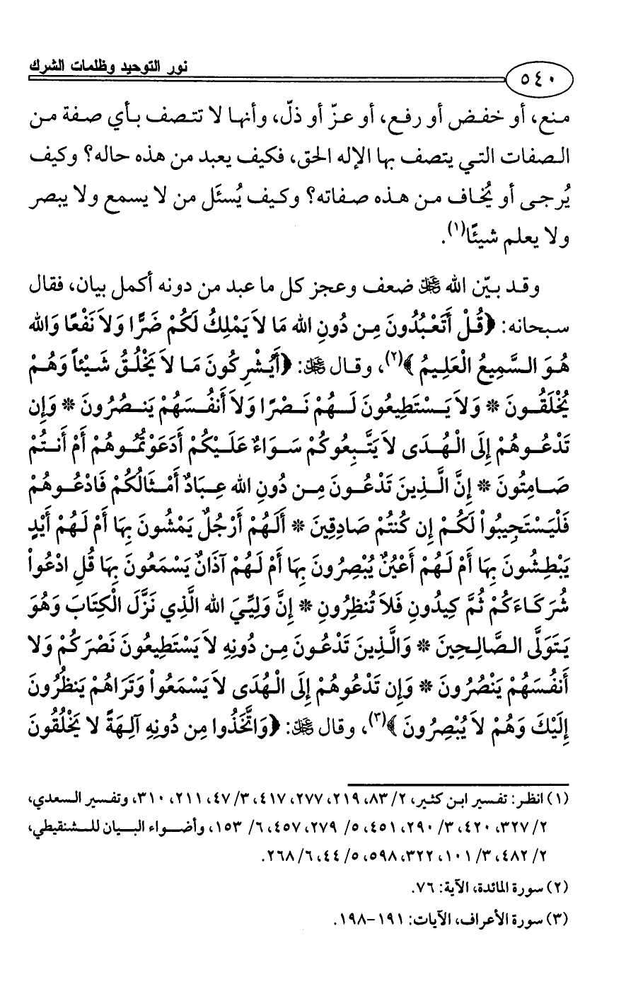 (¬3) سورة الأعراف، الآيات: 191 - 198.