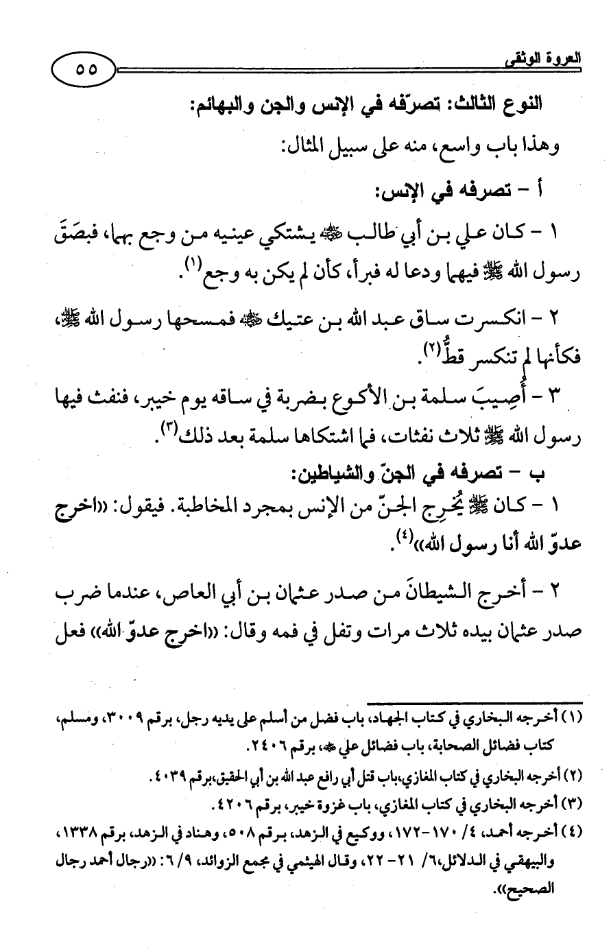 1 - كان - صلى الله عليه وسلم - يُخرِج الجنّ من الإنس بمجرد المخاطبة. فيقول: ((اخرج عدوّ الله أنا رسول الله)) (¬4).